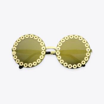 Gold Women’s Round Floral-Trim Sunglasses